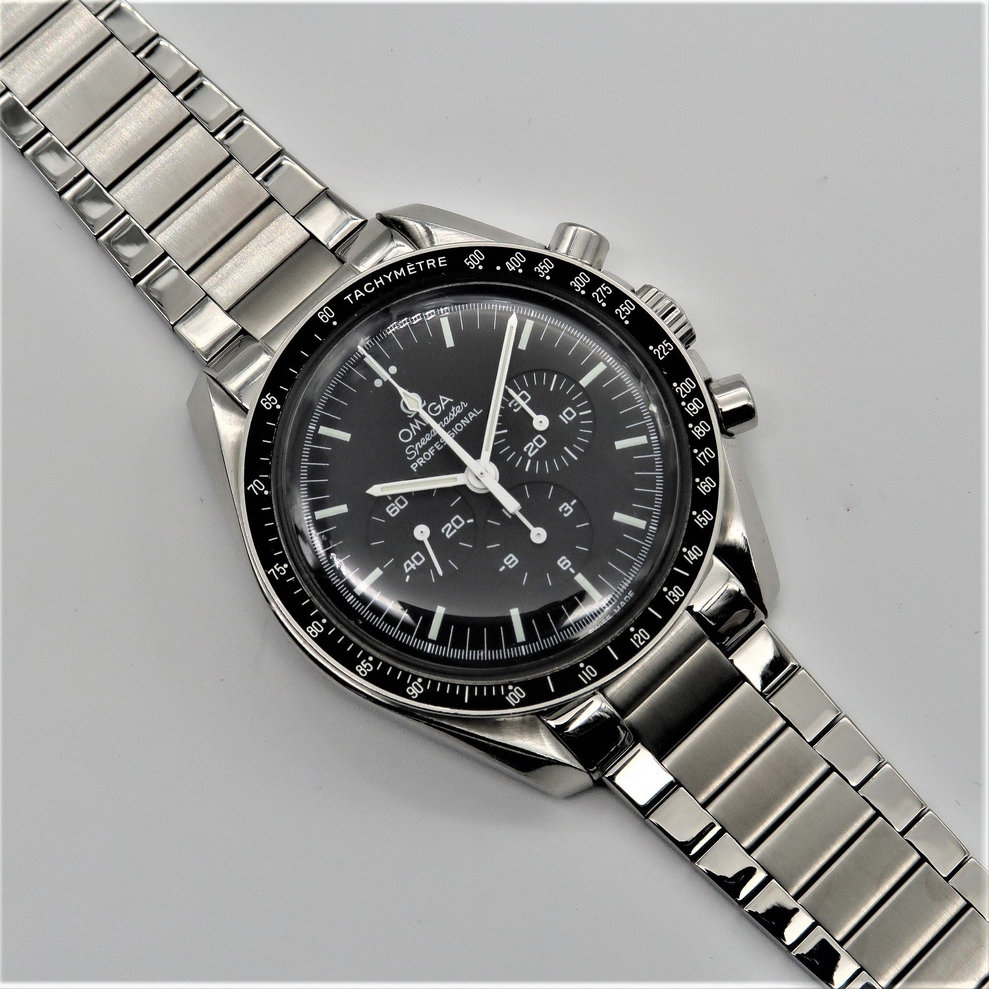 This flat link with the fitted end links for Speedmaster is just tremendous . . . Great solid end links, so they’re not the folded style, and they fit perfectly . . . It just looks great on the Speedmaster. Highly recommended