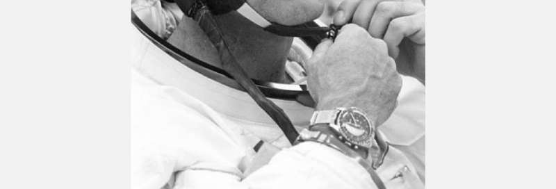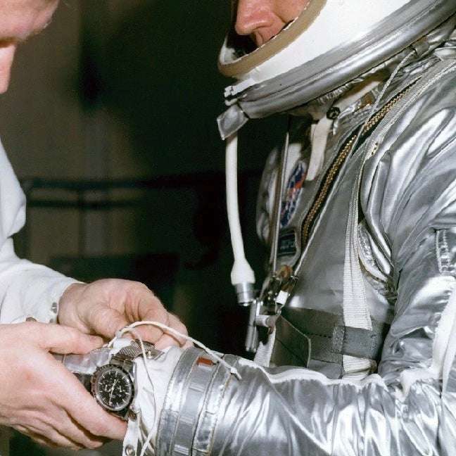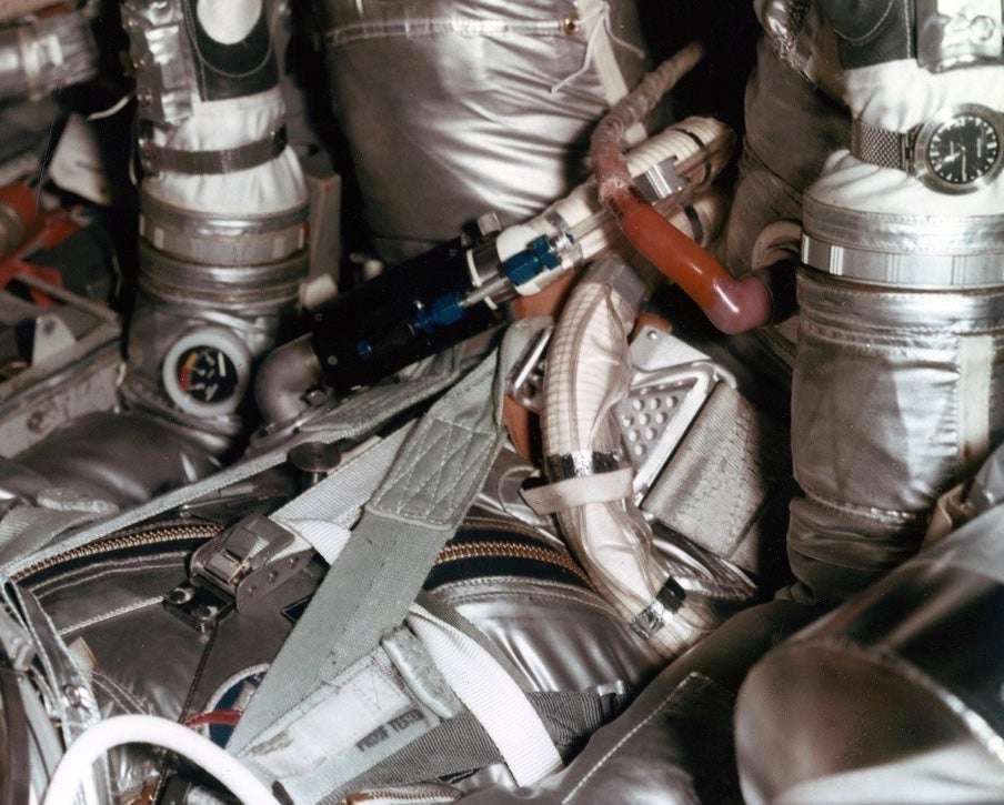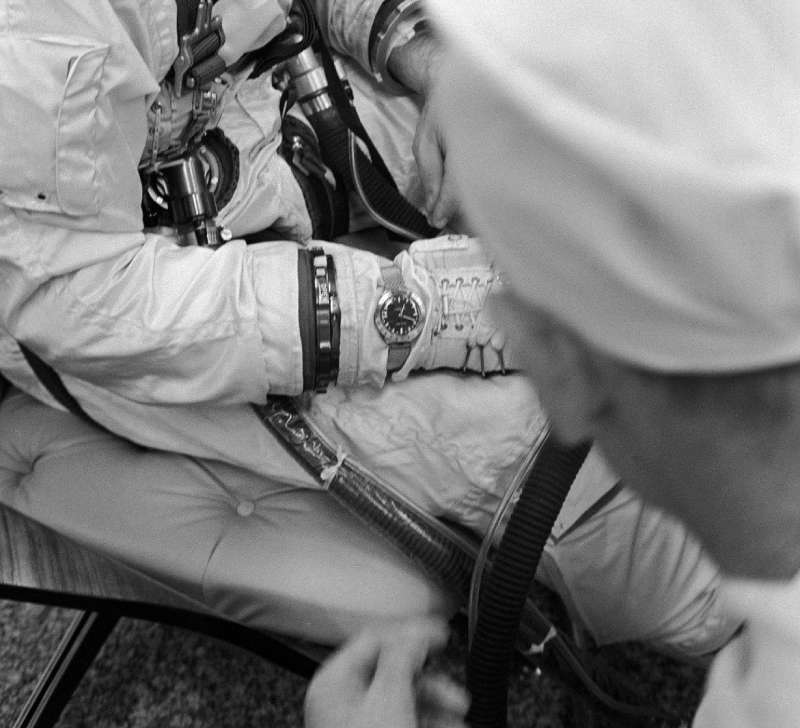 The Komfit/JB band was made to be easily adjustable, flexible, and capable of fitting just about anyone. Strapped to the wrist one moment, it could be resized in seconds, or, in the case of emergency, removed with the flick of a finger. As a result, NASA astronauts were permitted to wear the bracelet, and they routinely did so during the Mercury, Gemini, and Apollo periods. Like the watch with which it was often worn (the Omega Speedmaster), the Komfit/JB band quickly became synonymous with the NASA space programs.