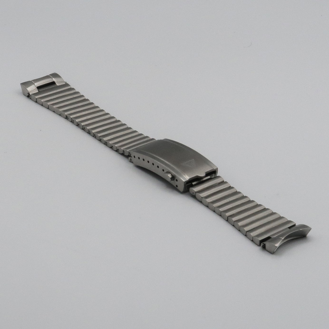 The Barrel Bracelet is a new concept for Forstner. Although based on a similar vintage design, the vintage versions were typically made with an elastic, rather than solid construction, and did not have removable links or a clasp. Forstner's Barrel Bracelet maintains the vintage look--keeping the clean horizontal rolled link pattern with no visible connection between the links--but upgrades all details of the bracelet. The links are solid stainless steel, and, as with Forstner's other fitted bracelets, links are removable easily with a single screw. With its fully brushed finish, taper to 16mm, and Forstner's push-button milled clasp, the bracelet provides an excellent sporty-yet-elevated look while maintaining the comfort and quality you'd expect from a Forstner bracelet.