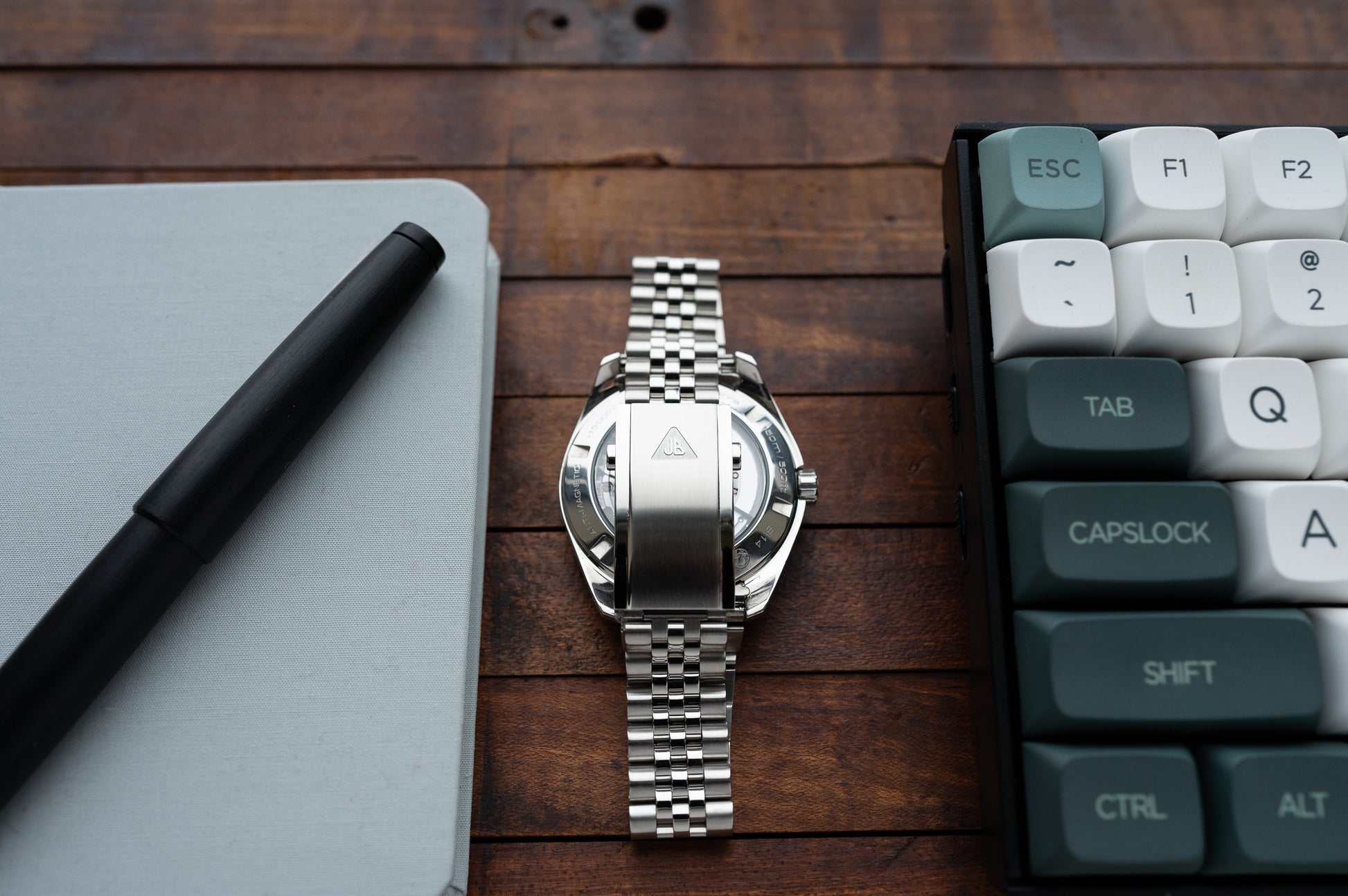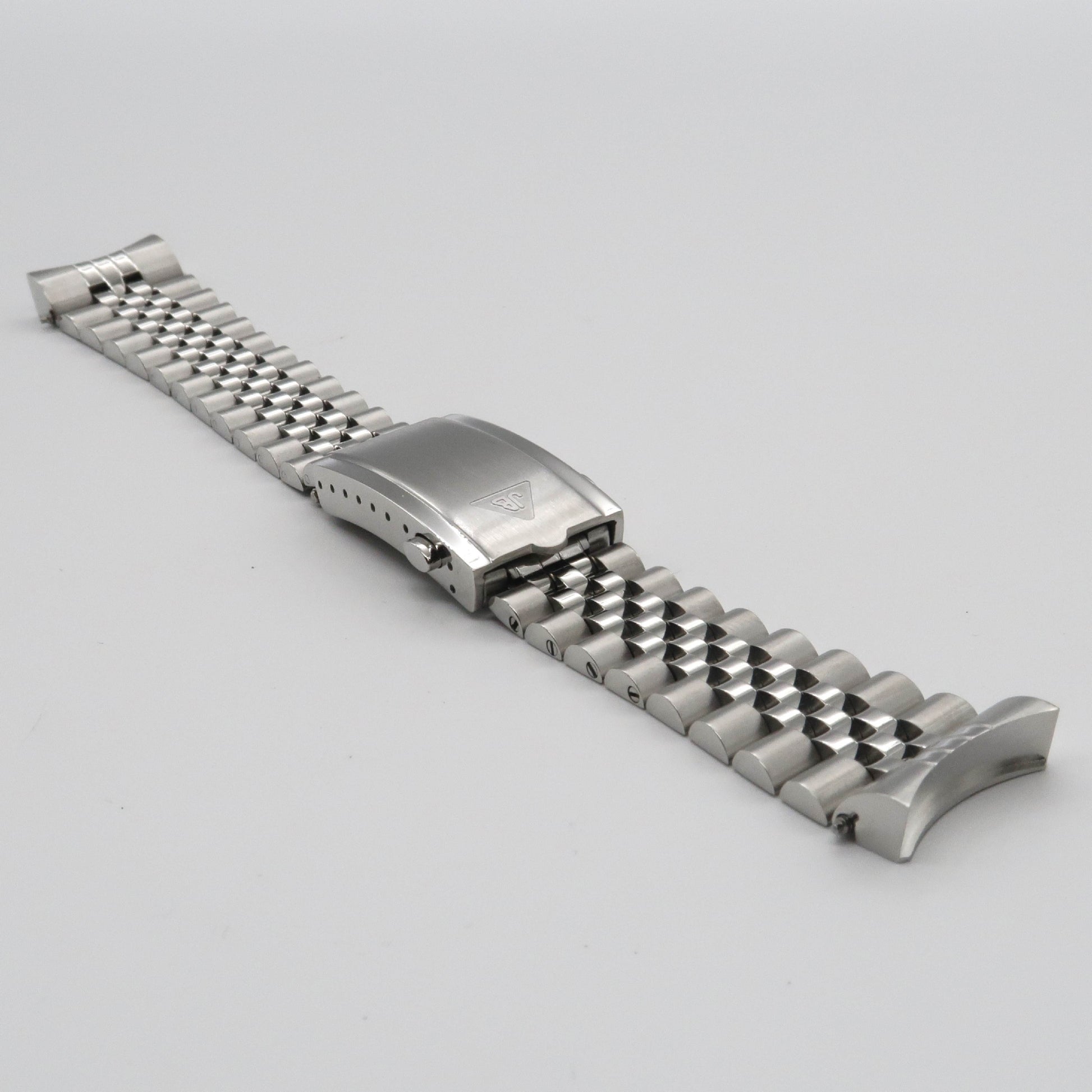 The Model J--Forstner's jubilee-style bracelet--is one of our most popular bracelets. A classic design, the Model J provides an overall more elevated look with its beautiful alternating polished/brushed finish, taper to 16mm at the clasp, and plentiful adjustment. Fitted to Forstner's milled clasp, the bracelet looks and wears like a dream.